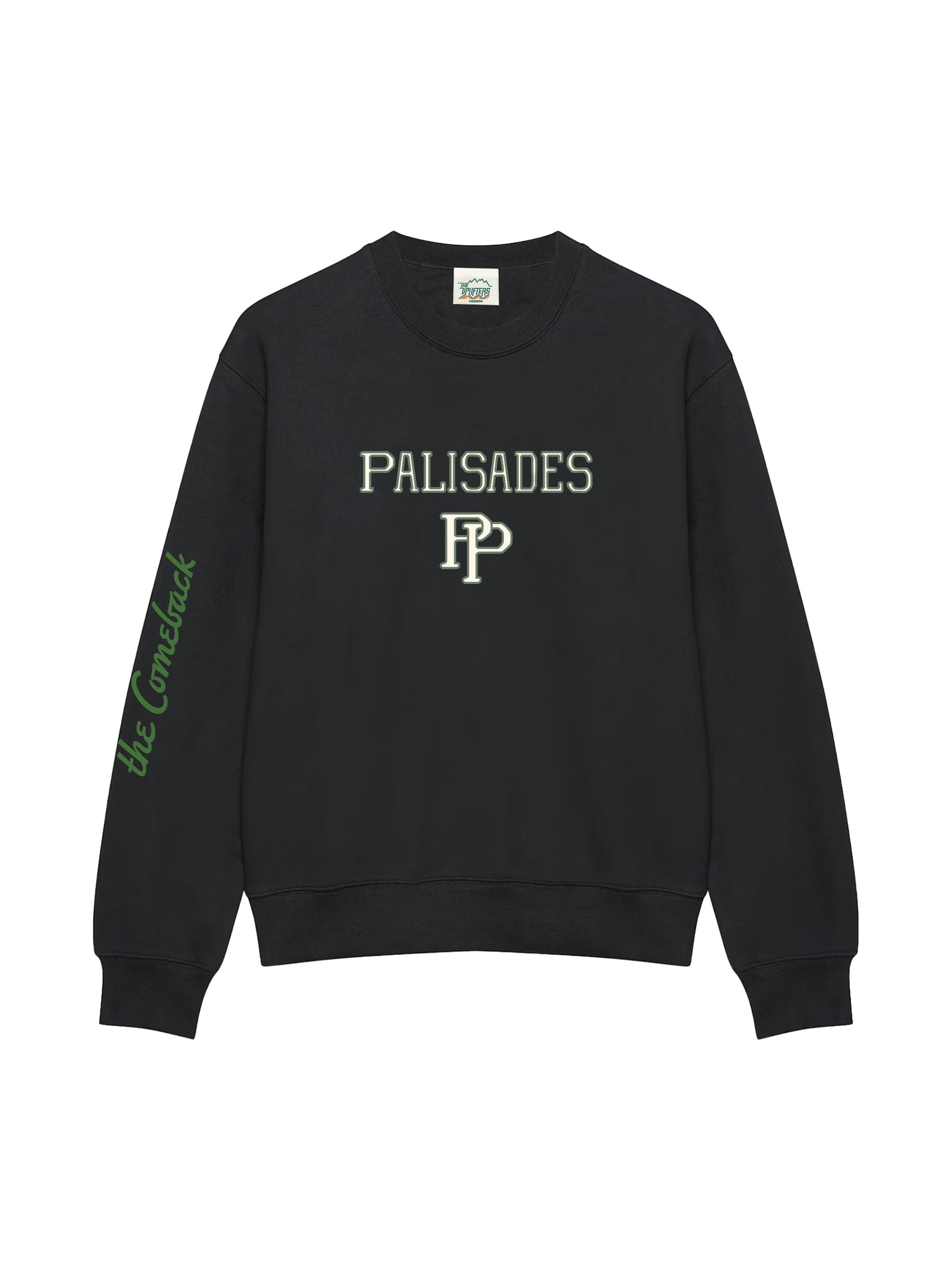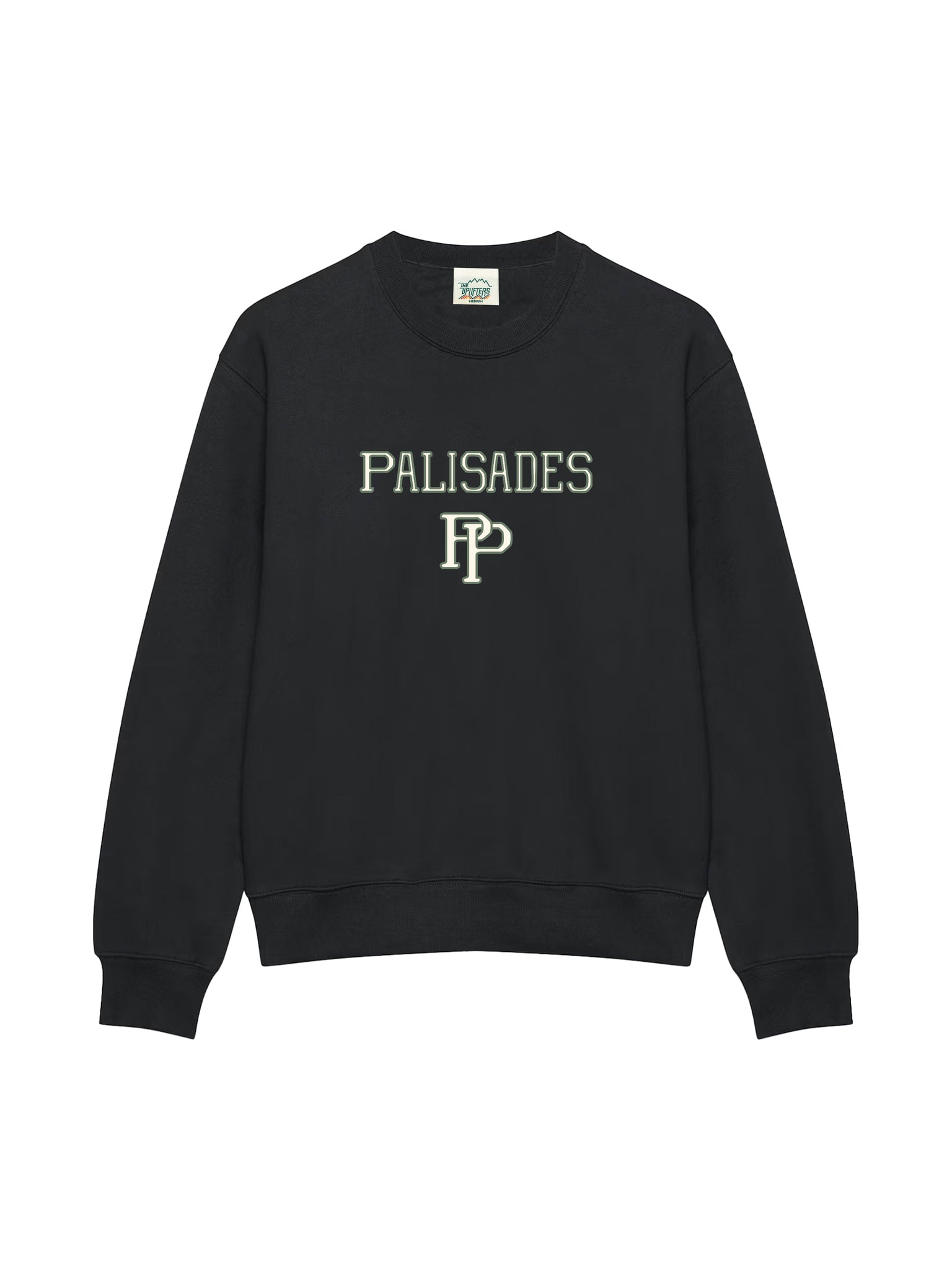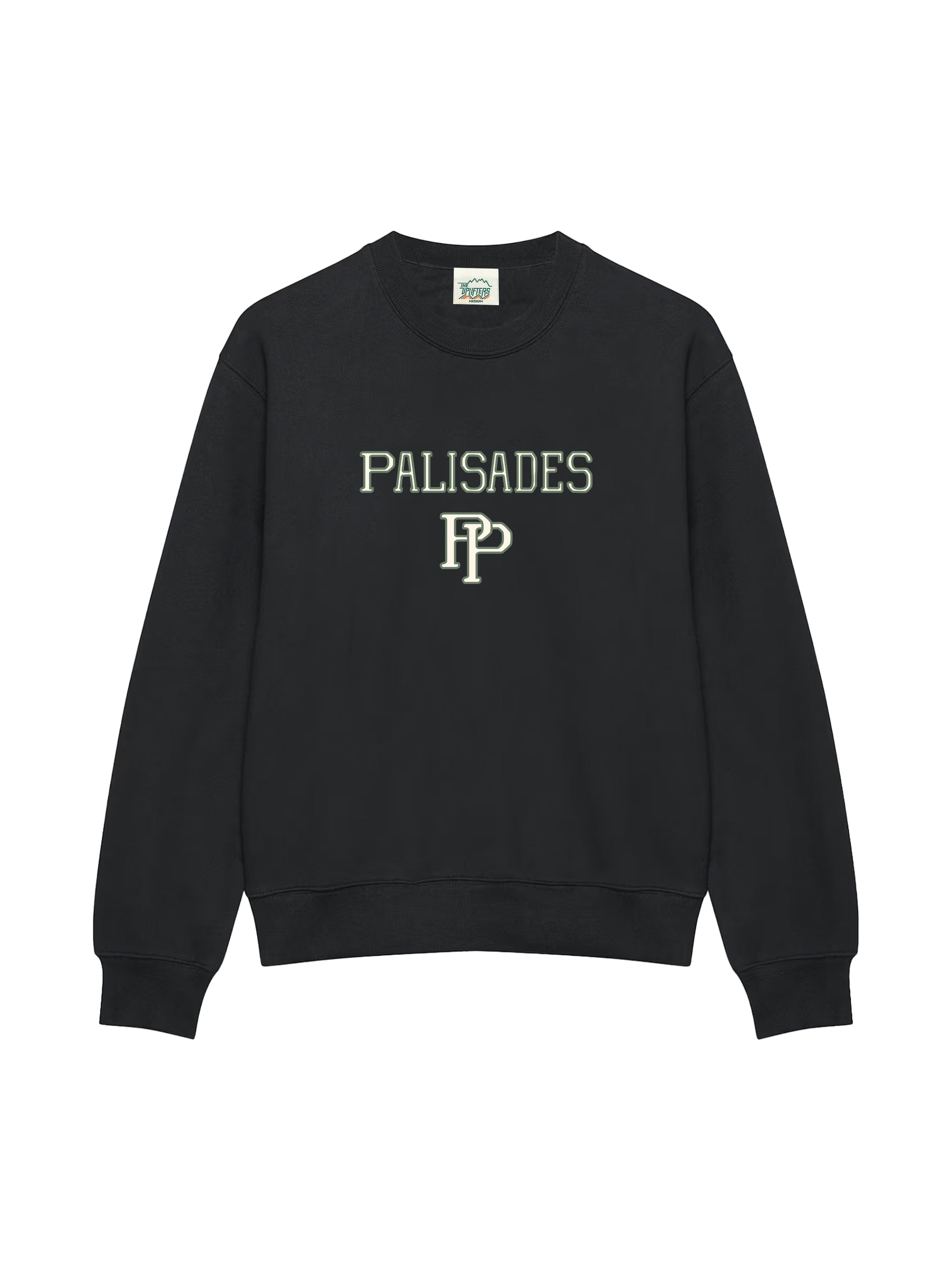 Our relax fit mid weight pullover sweatshirt with our custom print Palisades monogram graphic. Customize it by adding your favorite spot to the sleeve!